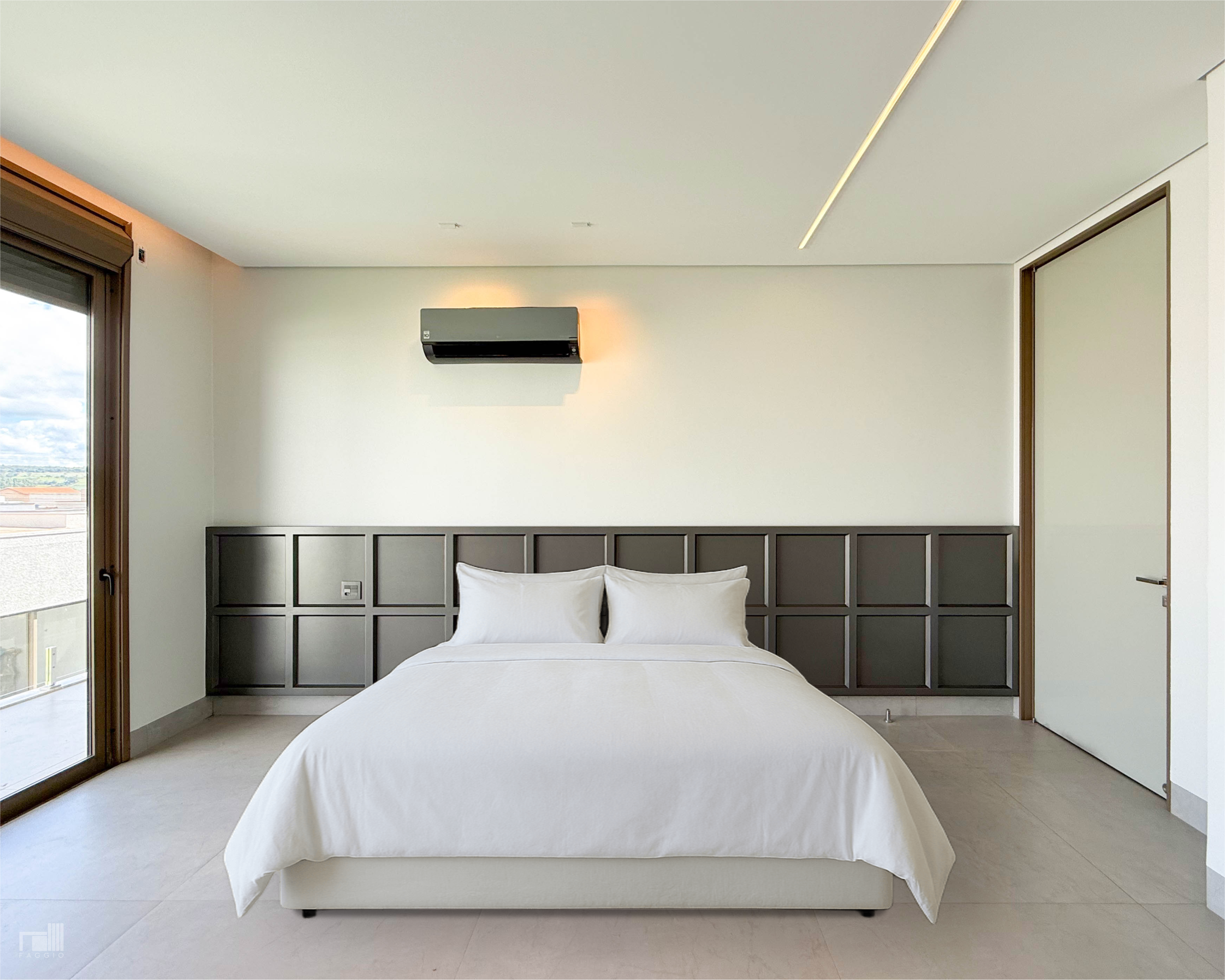 Um quarto com design contemporâneo, linhas limpas e acabamento sofisticado: o verdadeiro padrão Faggio de excelência.